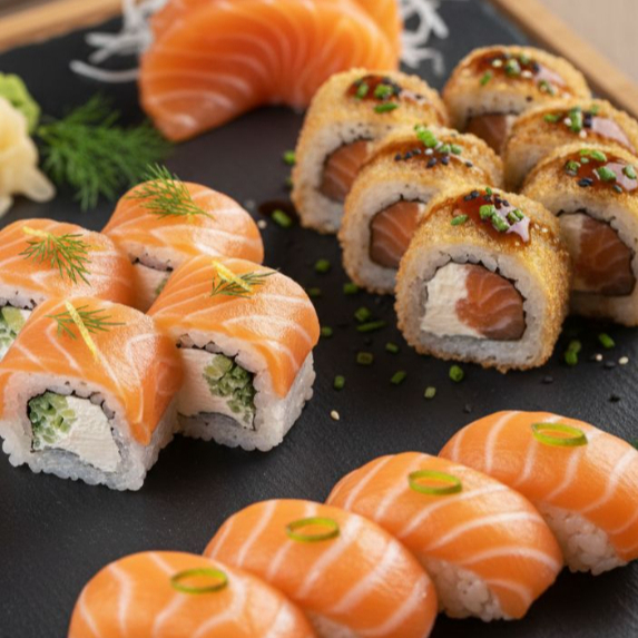 Combo Dominus (70 peças) Uma verdadeira obra-prima da culinária japonesa, o Combo Dominus oferece uma experiência única para quem busca variedade e sofisticação. Descubra sabores marcantes com: 🍣 10 Sashimis de Salmão frescos e delicados, 🍣 10 Sashimis de Salmão Trufado, com um toque sutil de trufa que eleva a experiência, 🍣 10 Sashimis de Salmão Especial com Alho Poró, trazendo uma combinação irresistível de frescor e crocância, 🔥 10 Jowls Especial Gratinado, cremoso e perfeitamente gratinado, 🌶️ 10 Jowls com Geleia de Pimenta, para quem adora o equilíbrio entre doce e picante, 10 Jowls massaricado 🍱 10 Uramaki Philadelphia Salmão, o clássico amado com cream cheese.