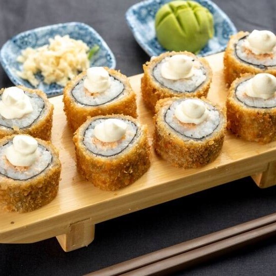 Temaki empanado com cream cheese, cebolinha e tarê . (Não aceitamos alterações)