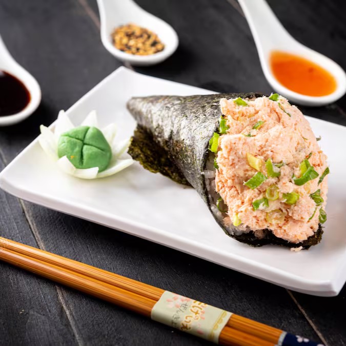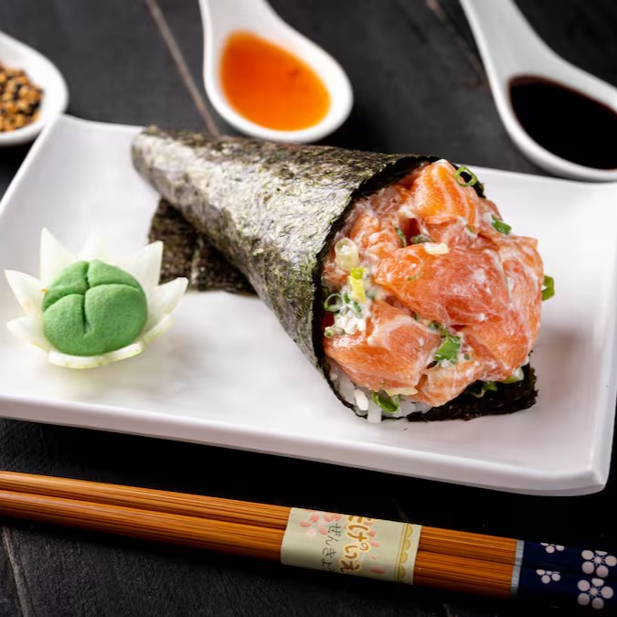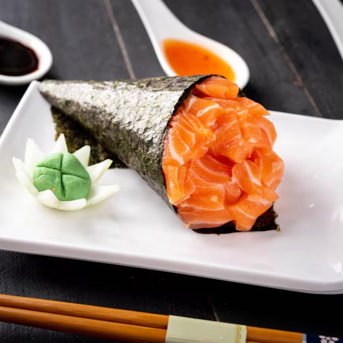 Temaki De Salmão Com Cream Cheese E Cebolinha.