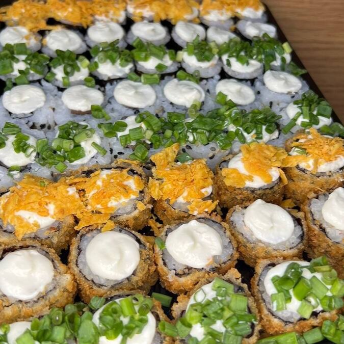 Combo 77 peças:30 Hossomakis salmão20 Hossomakis pepino 6 Uramakis salmão 18 Hot holls salmão