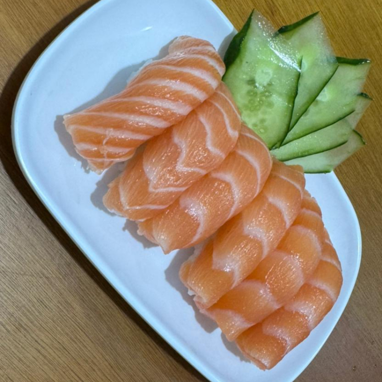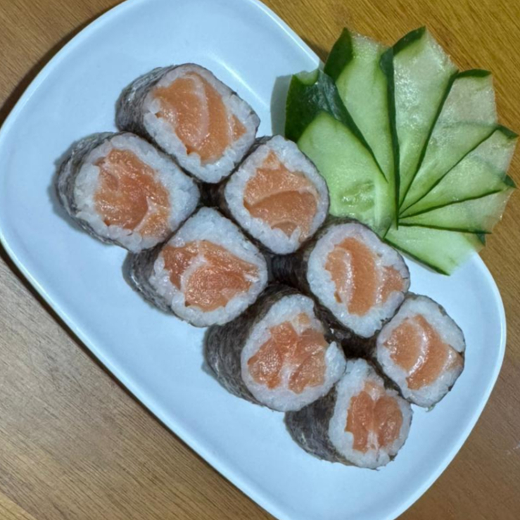 5 Sashimi de Salmão, 2 Joy Pepino, 2 Joy Salmão, 2 Niguiri de Salmão, 6 Uramaki Grelhado
