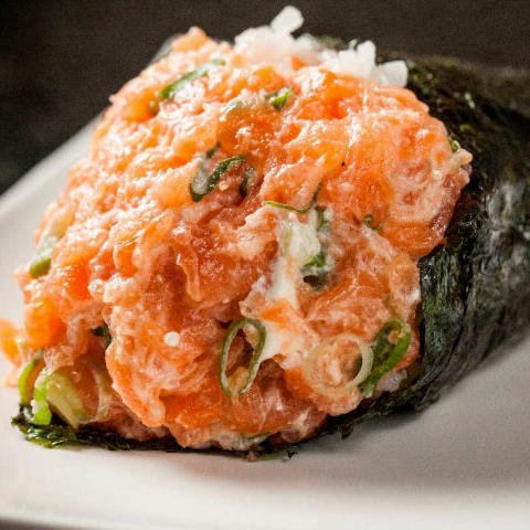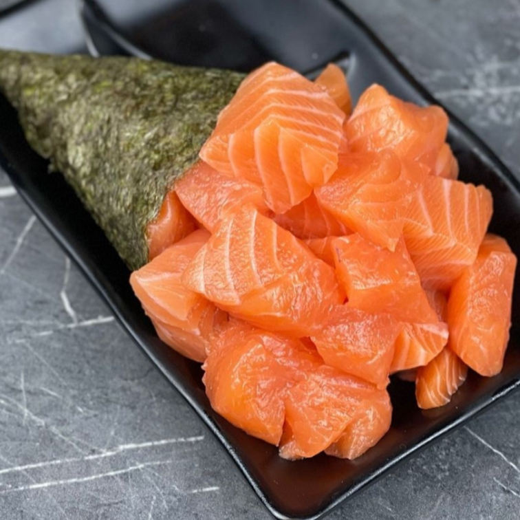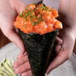 1 temaki Filadélfia, 1 temaki skin e 1 temaki grelhado
