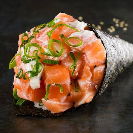 Elaborado com salmão fresco cortado em cubinhos, combinado com arroz de alta qualidade, cream cheese cremoso, cebolinha fresca e gergelim tostado. A combinação proporciona uma textura irresistível e um sabor autêntico e inesquecível.