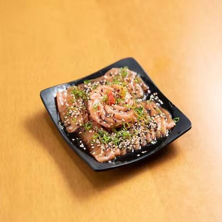 Deleite-se com nosso saboroso Sashimi de Salmão. O prato é meticulosamente preparado com 6 fatias primorosamente cortadas de salmão fresco, apresentando um sabor inigualável e uma textura suave que derrete na boca. Uma delícia rara que promete uma experiência culinária memorável.