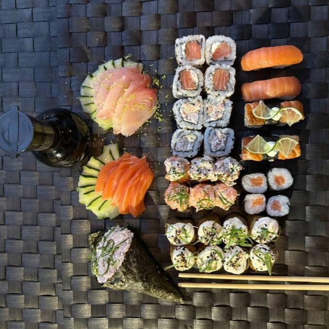 Combo 2 • 4 hossomaki de salmão grelhado • 4 hossomaki de salmão cru • 4 hossomaki de salmão cru • 2 niguiri de salmão • 2 niguiri de peixe branco • 6 joy variados • 8 hot variados • Sashimi de salmão – 5 fatias • Sashimi de peixe branco – 5 fatiasCozinha • Shimeji – 70 g • Sunomono – 70 g • Bifum – 70 g • Ceviche – 70 g • 4 harumaki de queijo