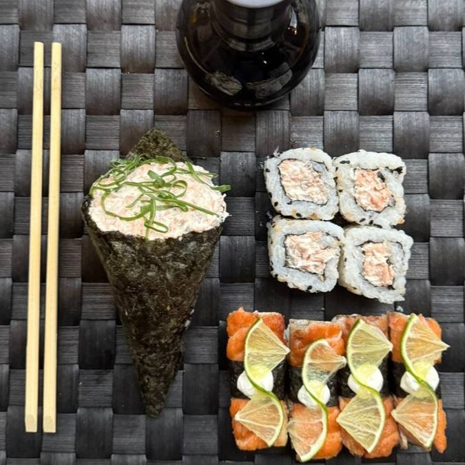 O salmão, grelhado à perfeição e temperado com um blend exclusivo de temperos orientais, traz a autenticidade e sabor inconfundível. A suavidade da cebolinha e a textura crocante do gergelim criam um contraste perfeito, enquanto o cream cheese adiciona uma cremosidade irresistível. Uma experiência gastronômica única, repleta de sabores e texturas.