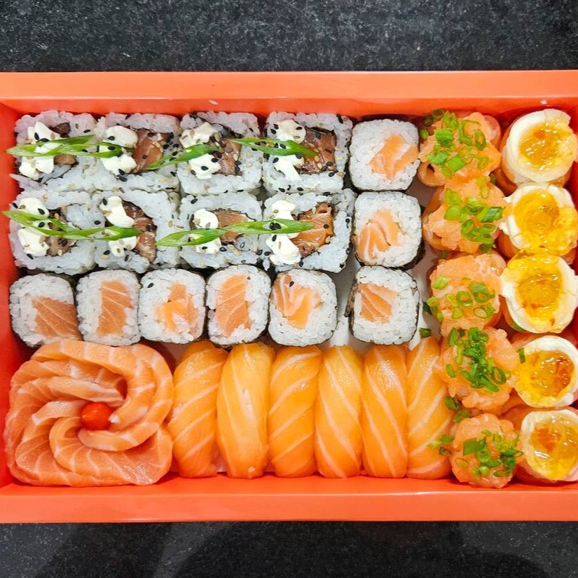 Delicie-se com o nosso 'Combinado de 40 Peças'. Esse prato permite que você personalize sua experiência gastronômica! Selecione os sabores que mais lhe agradam: 8 fatias de sashimi, 8 uramaki, 8 hossomaki, 10 peças de joe (2 sabores) e 6 niguiri.