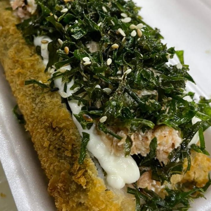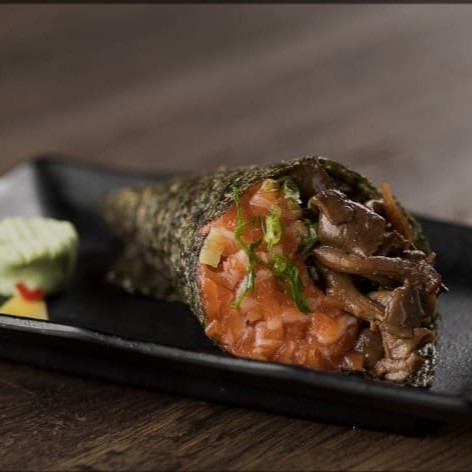 Delicioso temaki de salmão grelhado com cream cheese e cebolinha empanado