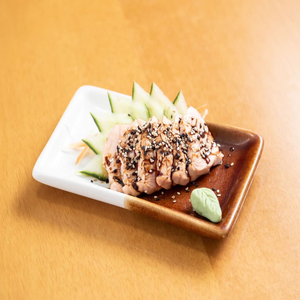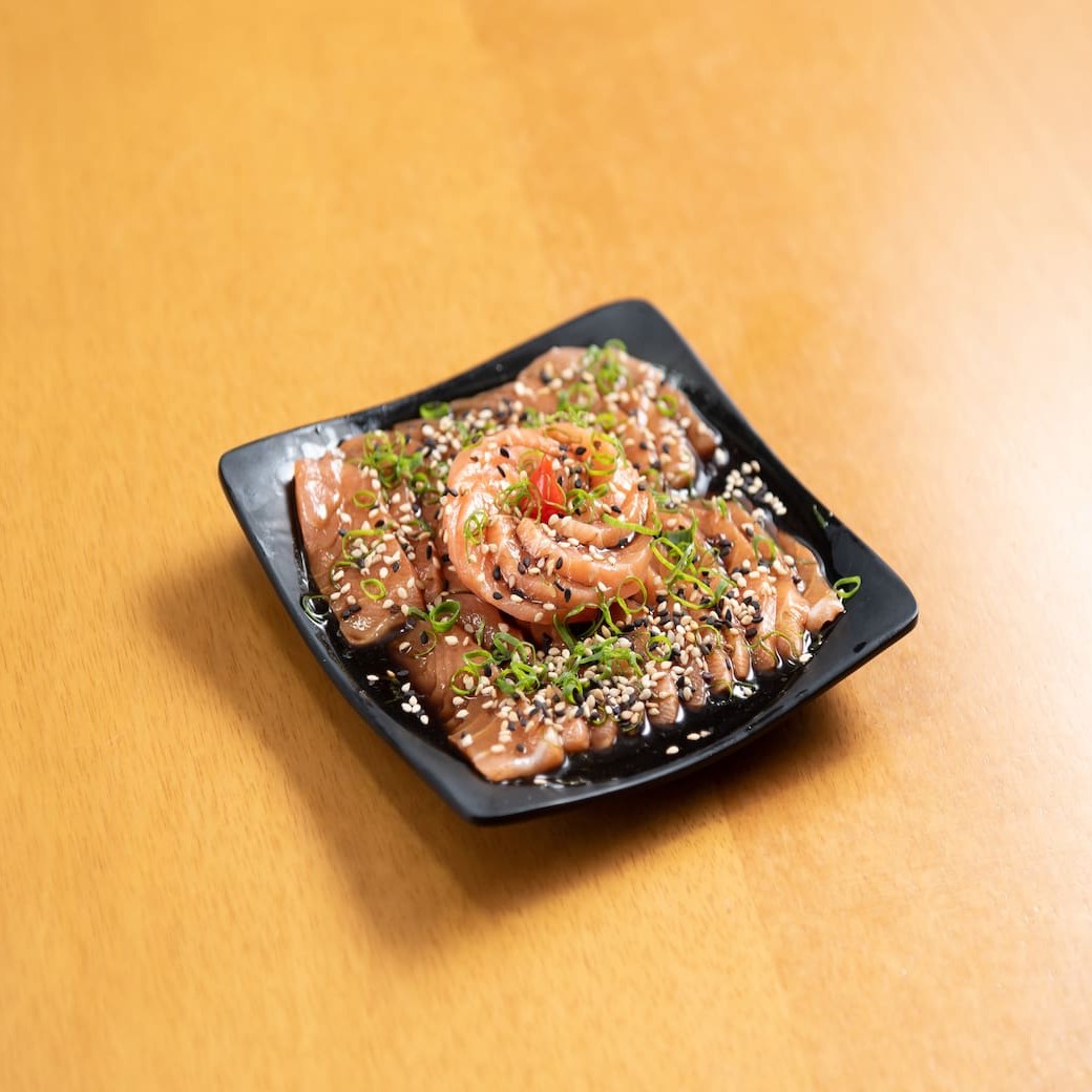 Sashimi rosted (salmão maçaricado) com gergelim e tarê
