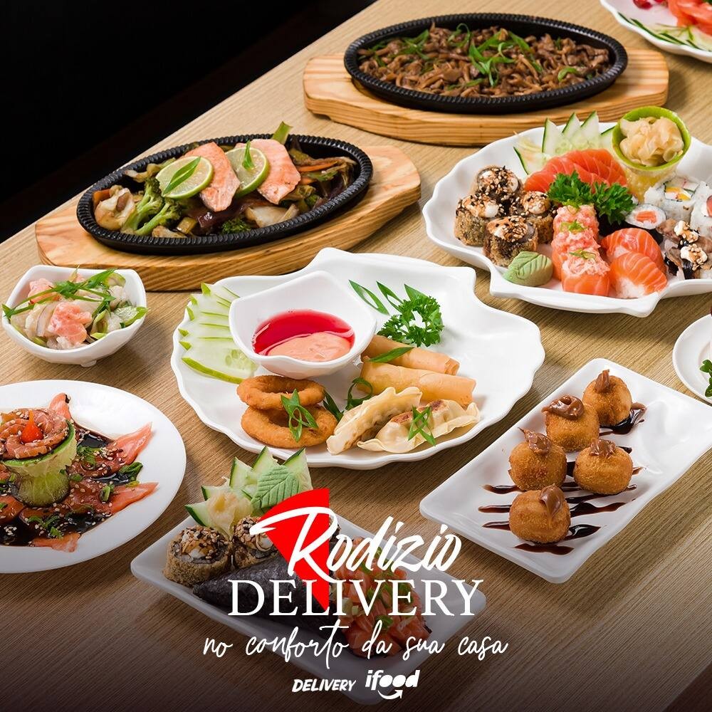 Escolha entre, sushis, yakisoba, rolinhos, ceviche, teppan de salmão grelhado