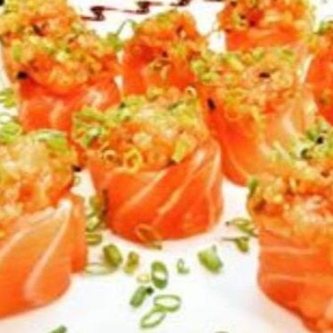 9 hot rolls (1 porção) 1 shimeji, 2 fatias de salmão grelhado com teppan de legumes, 1 guioza , 2 cebolas empanadas, 2 rolinhos de queijo (harumakis) e escolha entre os acompanhamentos (ceviche ou sunomono)