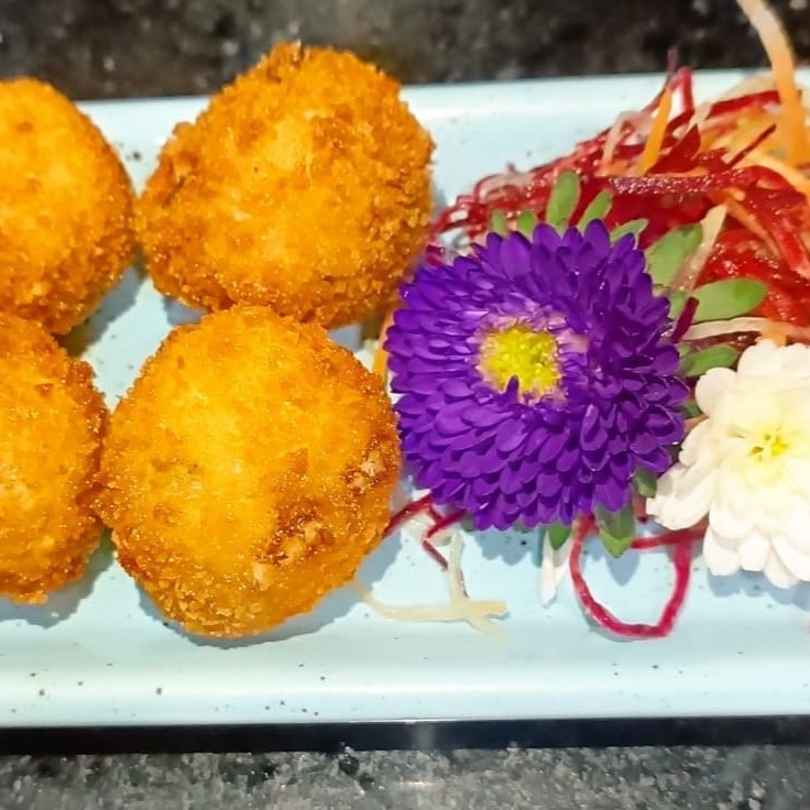 Bolinho de peixe crocante por fora e marcio por dentro! Temperos na medida e o peixe sempre fresco.