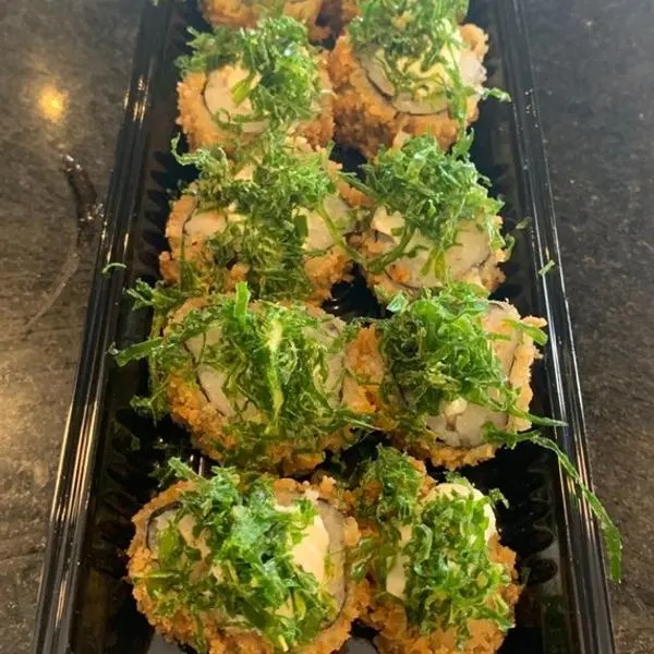 Enrolado com shimeji e cream , frito e shimeji em cima.