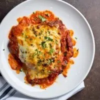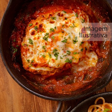 Frango, empanado Molho Artesanel de tomate e Queijo Gratinado