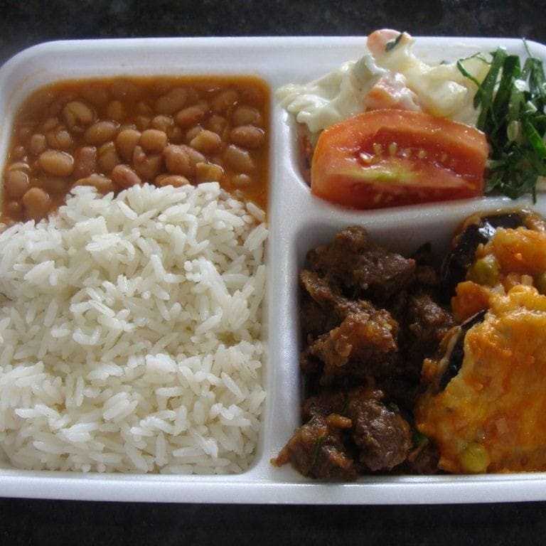BISTECA DE LOMBO,FRITAS,LEGUMES SORTIDOS,MACARRAÕ ALHO E ÓLEO,ARROZ E FEIJÃO
