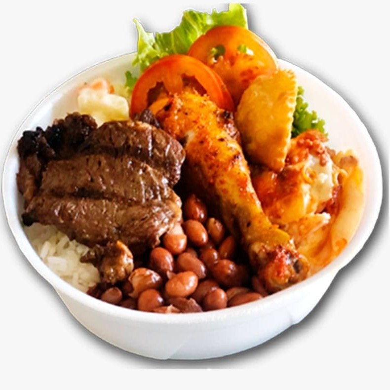 FRITAS,FAROFA,LEGUMES SORTIDOS,ARROZ,FEIJÃO E UM CONTRA FILE ANCHO DE 200G