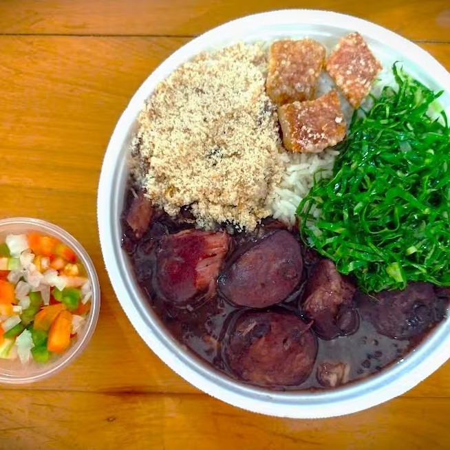 Composição da Feijoada: Carne bovina, Linguiça calabresa, Lombo.