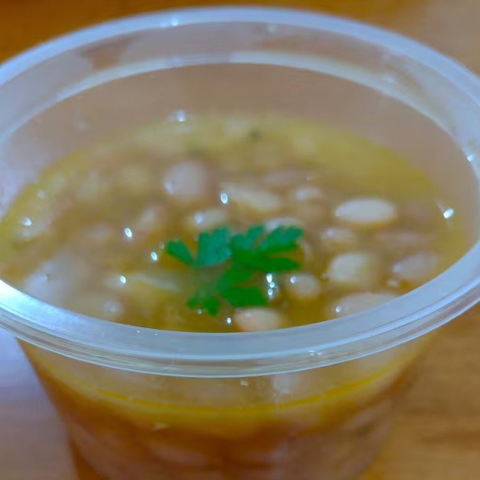 Arroz, (Feijão temperado com coentro fresco e calabresa)+ Fritas.