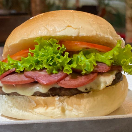 Pão Hambúrguer artesanal , presunto, queijo, calabresa tomate e alface