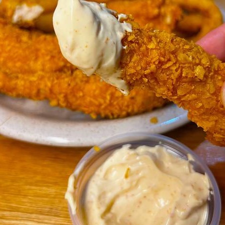Deliciosa novidade, exclusiva do The Best Chicken, Esses anéis de Cebola ficam super crocantes e saborosos com empanado de Doritos !