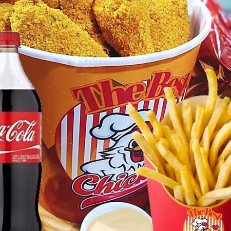 Ótima opção para dividir com a galera pagando menos. - 1 Balde Grande 1kg (Corte a sua escolha ) - 1 Balde Médio 500g (Corte a sua escolha ) - 1 Batata Grande 500g - 1 Batata Media 270g - 4 Molhos ( A sua escolha ) 1 Coca-Cola 2L - 1 Antártica 1L Nas opções: Chiken Tradicional Chiken Doritos ( Apenas Tiras sao empanadas no Doritos )