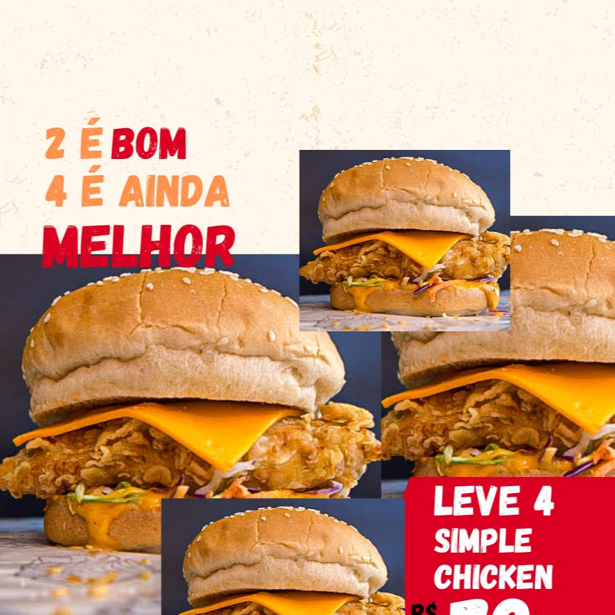 Super promoção! São 4 Chicken Crunchy por apenas 76,90. Corre aproveitar!