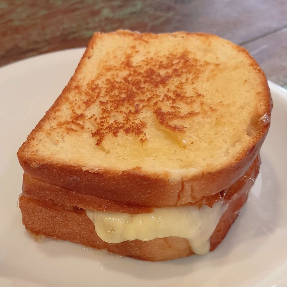 Pão de brioche com 75g de queijo muçarela derretido na chapa. Queijo livre de gordura trans.