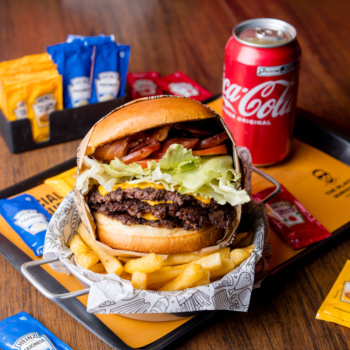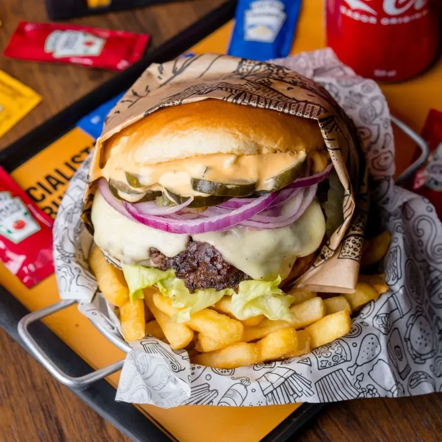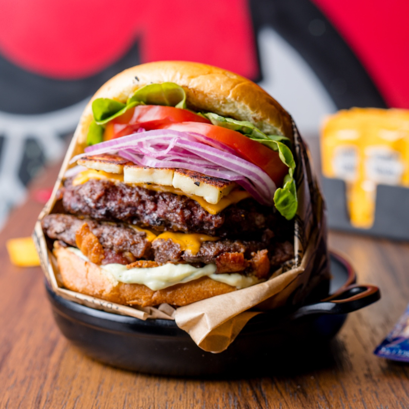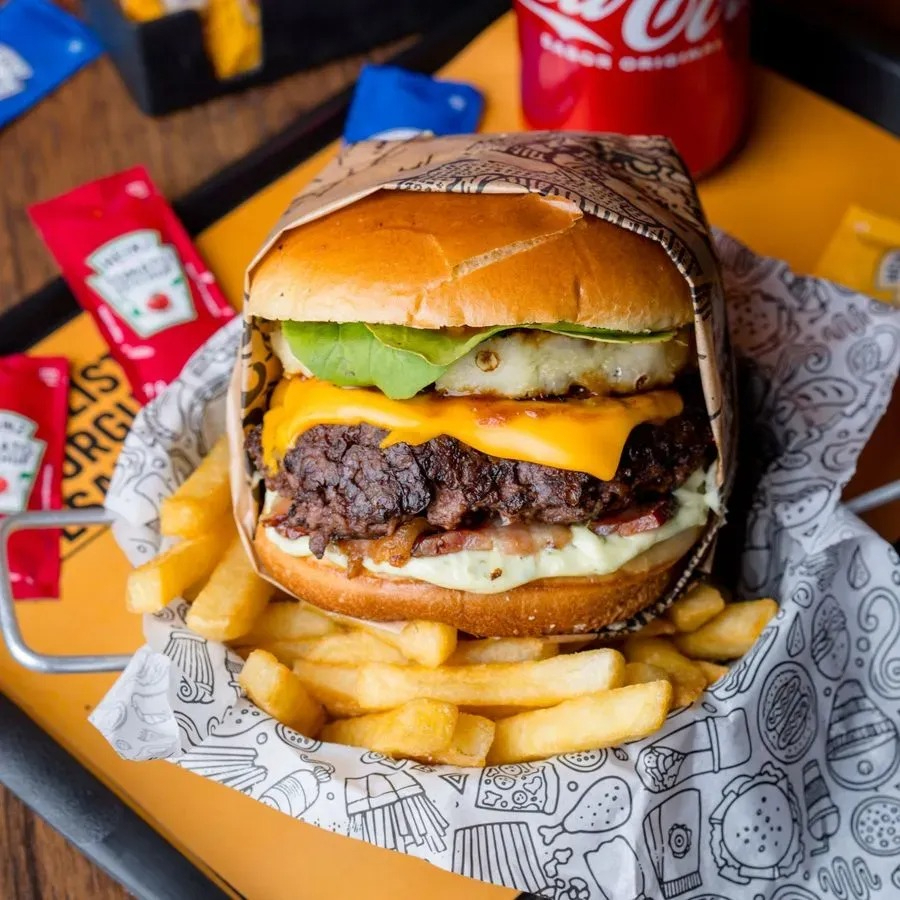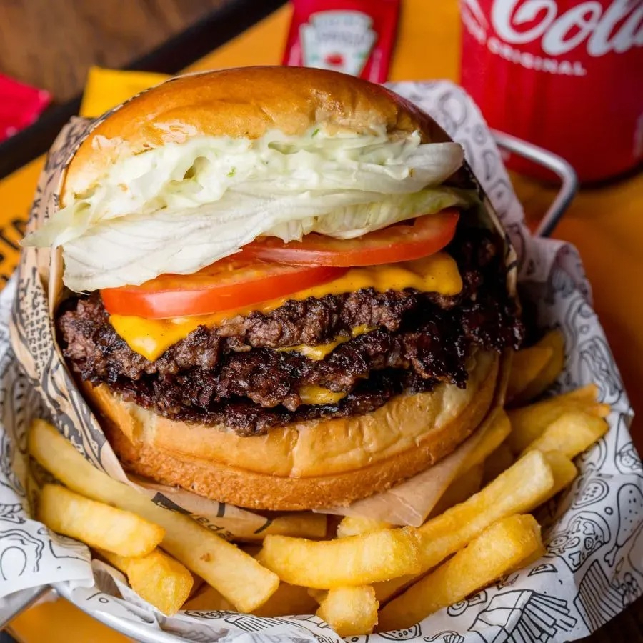 Esse lanche acompanha nosso delicioso Pão de Brioche Pullman, 2 Hamburguer de Fraldinha 140g, Queijo Cheddar Americano, Maionese Hellmanns, Cebola Roxa, Alface Americana e Tomate.