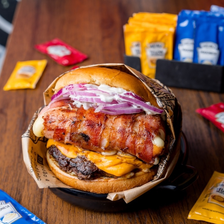 Essa belezinha é feita de muuuuito Queijo Mussarela envelopado no Bacon, nosso Burguer Especial da Casa, Queijo Cheddar, um Molho Especial Secreto e Cebola Roxa. Tudo isso no Pãozinho De Brioche. É De Comer Rezando!!!