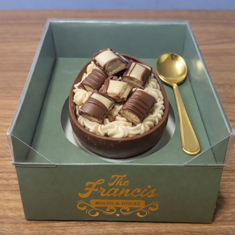 Massa de chocolate, brigadeiro de Ninho e creme de avelã com leite em pó.