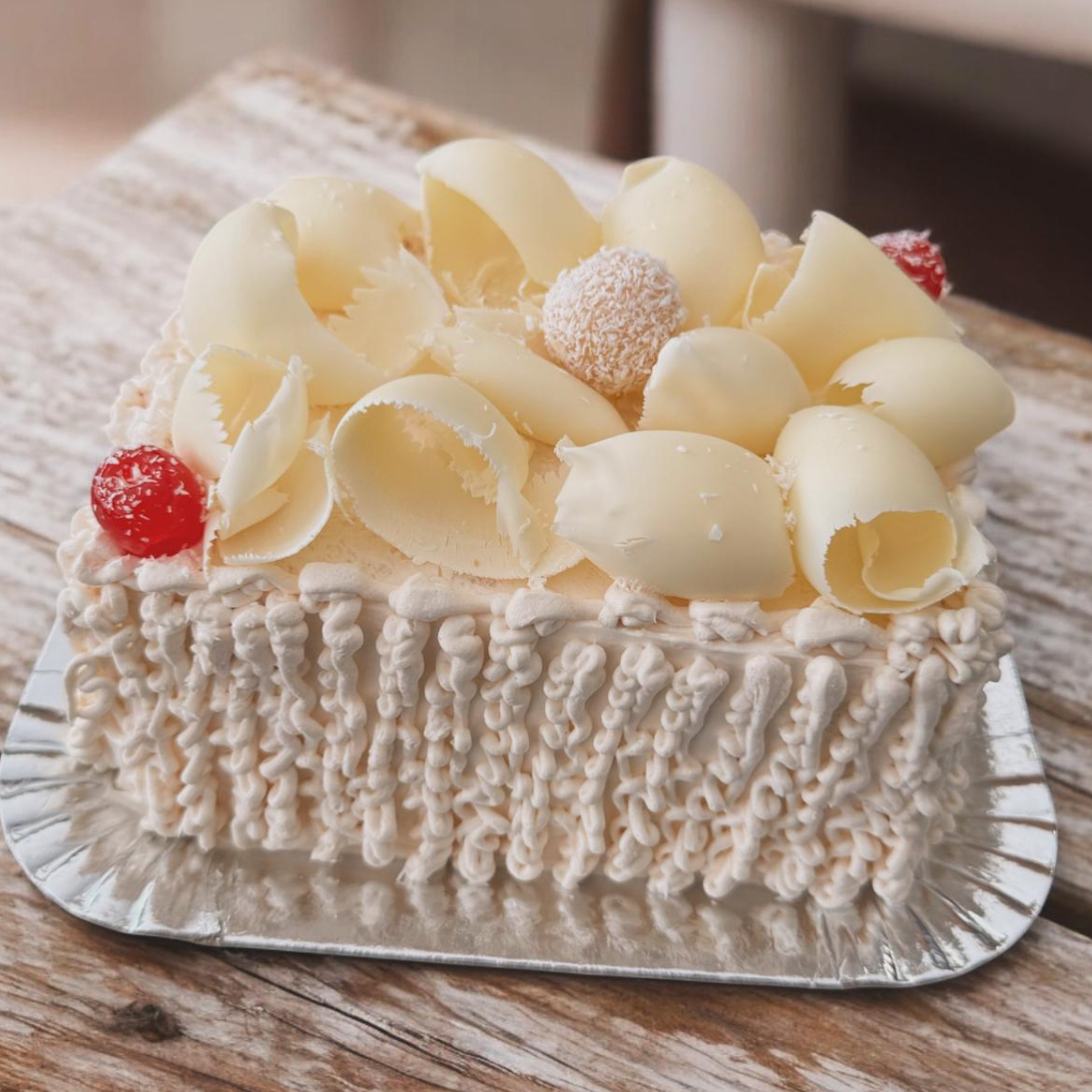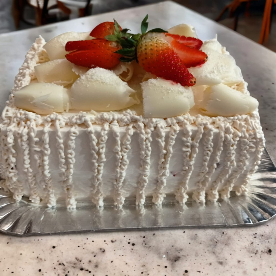 Pão de ló branco , Recheado com Doce de leite e cocada cremosa, e côco fino.