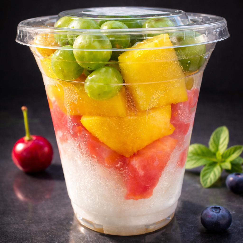 morango , melão , mamão , manga , uva verde, sem semente.