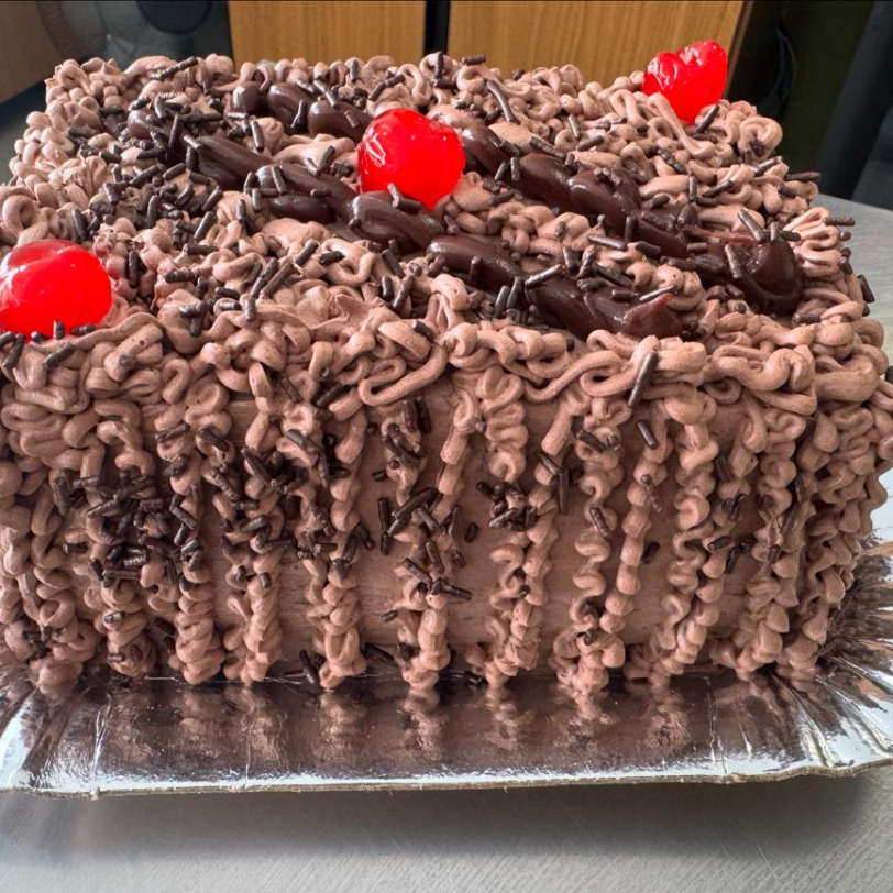 trufado preto e mousse de leite em pó Decoração e raspas de chocolate.
