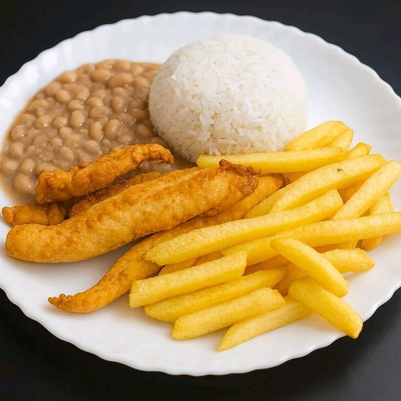 Acompanha Arroz, Feijão e Batata Frita
