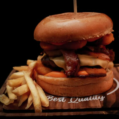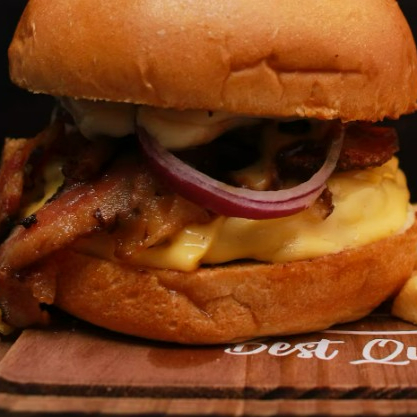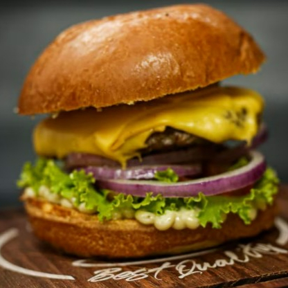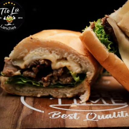 Delicioso lanche com pão, hambúrguer 150g, queijo prato, cebola roxa, tomate, alface americana e maionese da casa.