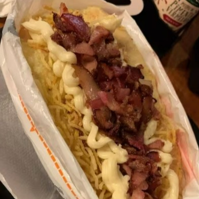 Deliciosa porção de Batata Frita c/ Cheddar e Bacon usamos ingredientes de qualidade.