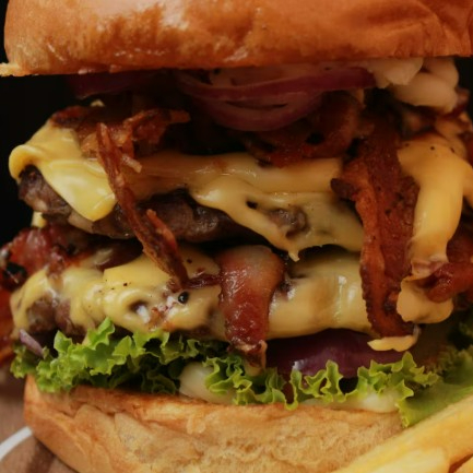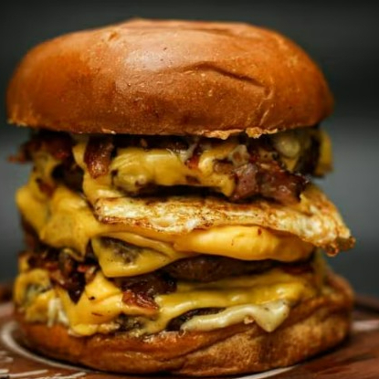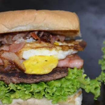 Delicioso lanche com Pão, hambúrguer, queijo, ovo, bacon, ketchup e maionese