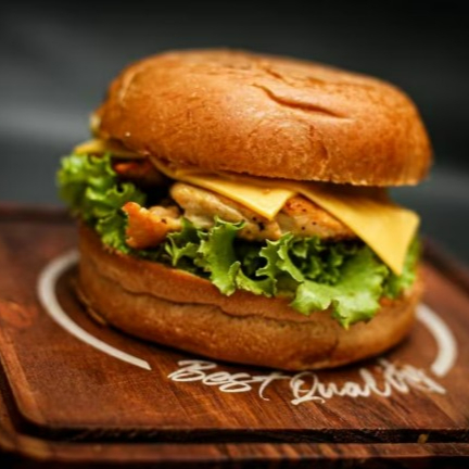 Delicioso lanche com Pão, filé de frango, queijo, alface, tomate, ketchup e maionese