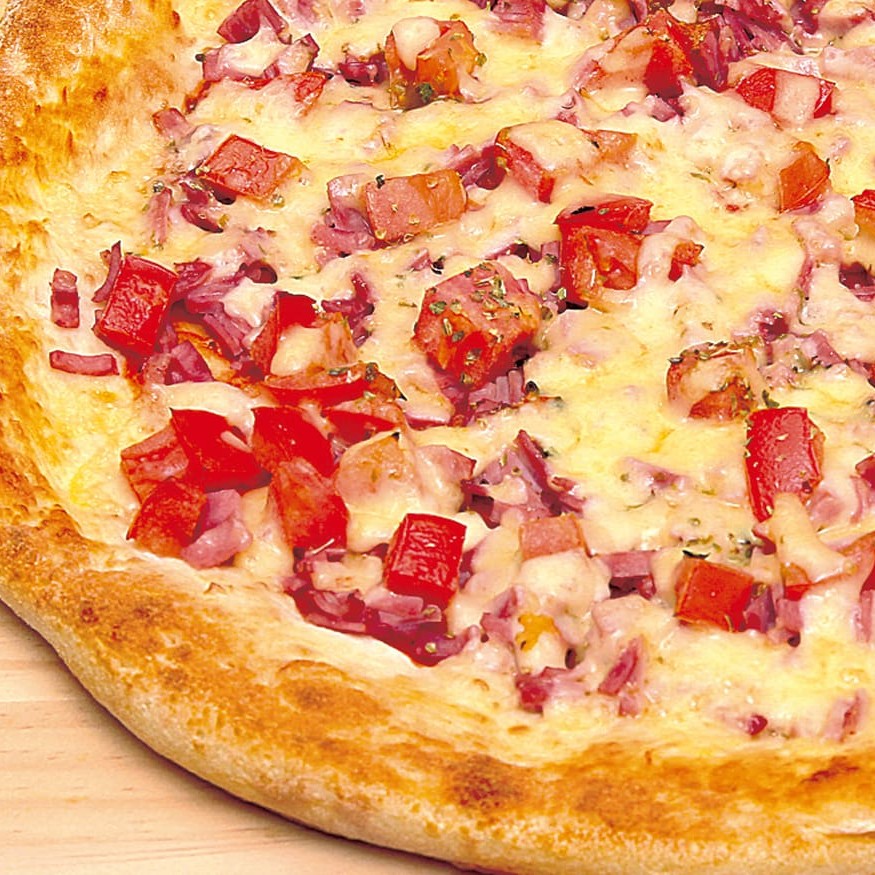 Presunto, molho de tomate, mussarela, tomate picado orégano e azeitonas