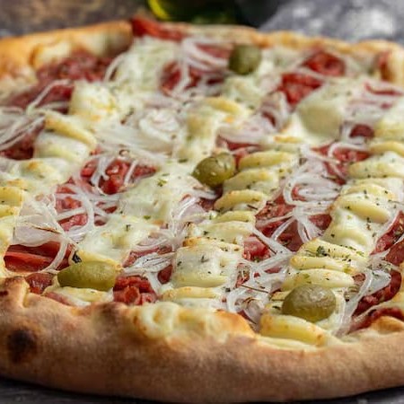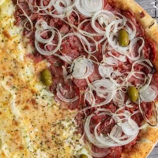 Um Duo mais que perfeito! A combinação da calabresa e a cebola fatiada com a deliciosa mussarela derretida com o toque do orégano.