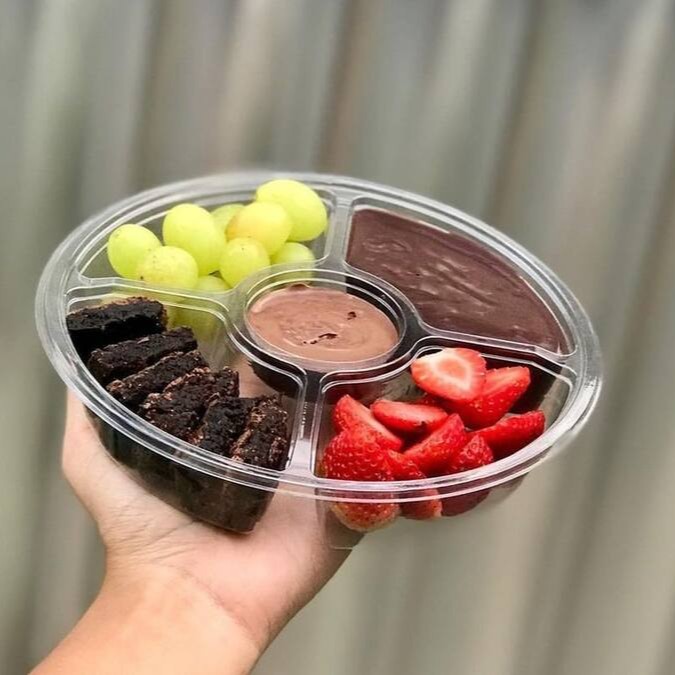 Fondue de tamanho-P super caprichado, recheios a gosto do cliente, o fondue vem sem creme, caso queira, favor escolher ao menos um