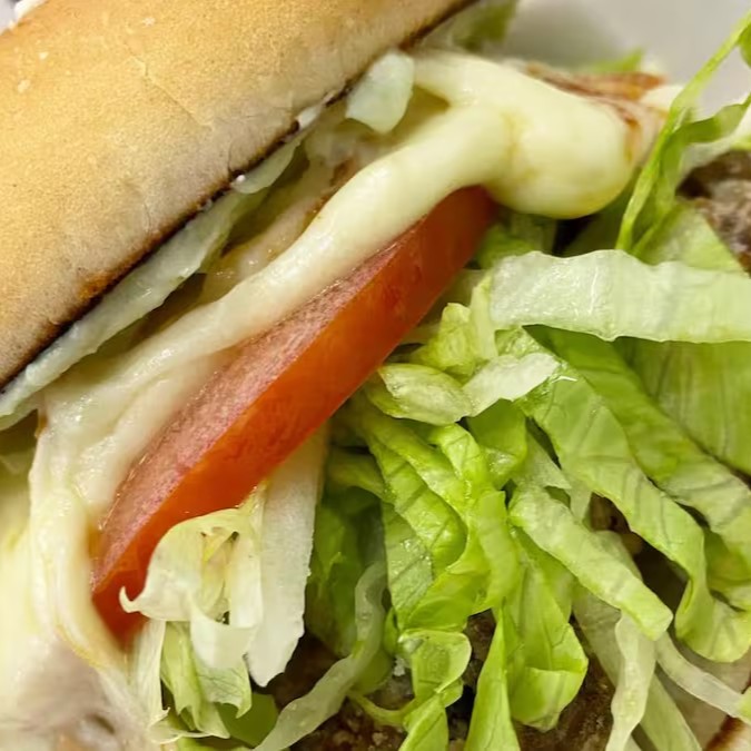 Pão de hambúrguer, tomate, queijo muçarela, alface, frango frito ao nosso estilo e maionese!! Você vai amar!!