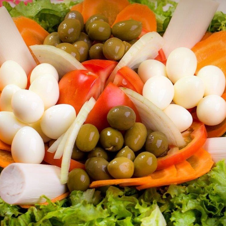 Acompanha alface, tomate fatiado, milho, azeitona, palmito, ovos de codorna, cenoura ralada e batata palha. (embalagem de 500ml.)