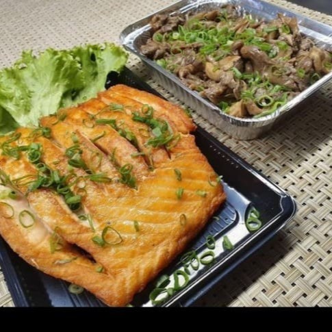 Salmão grelhado 500 gramas shimeji 500 gramas