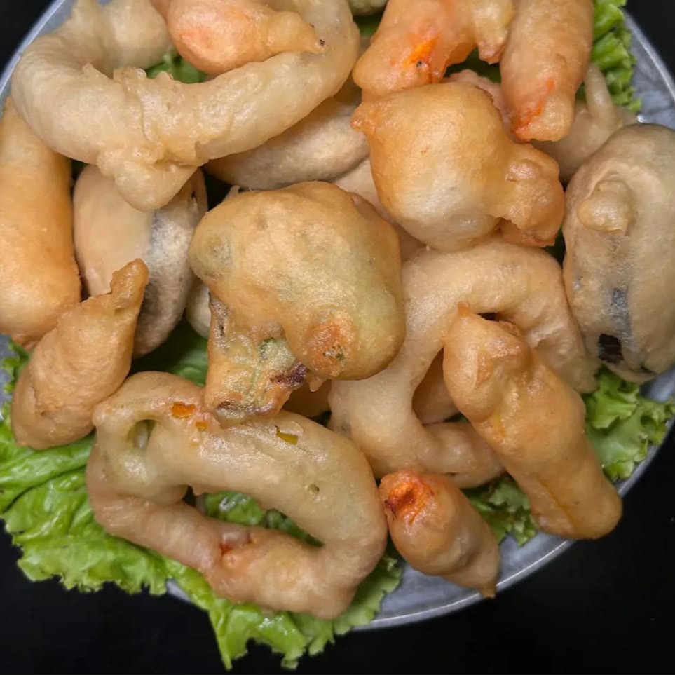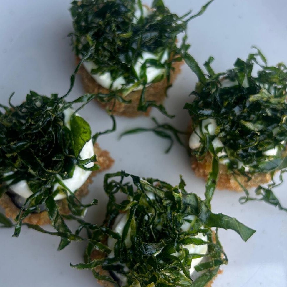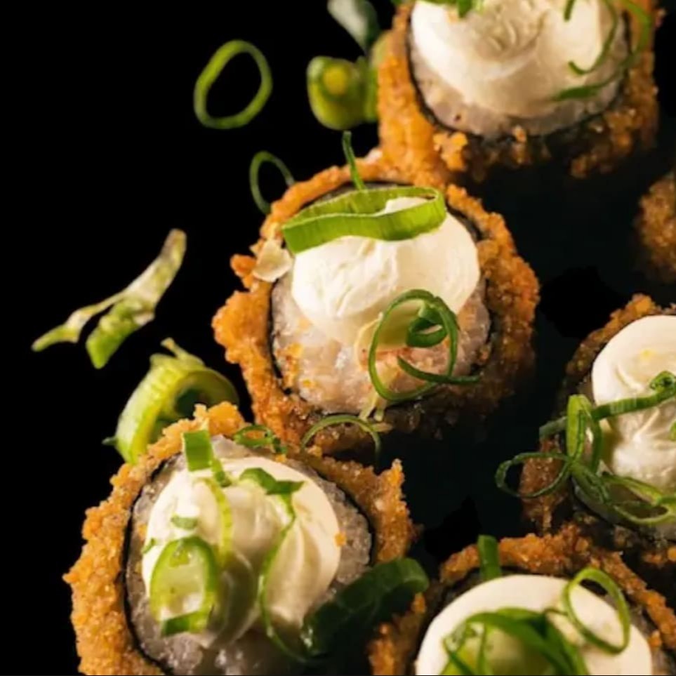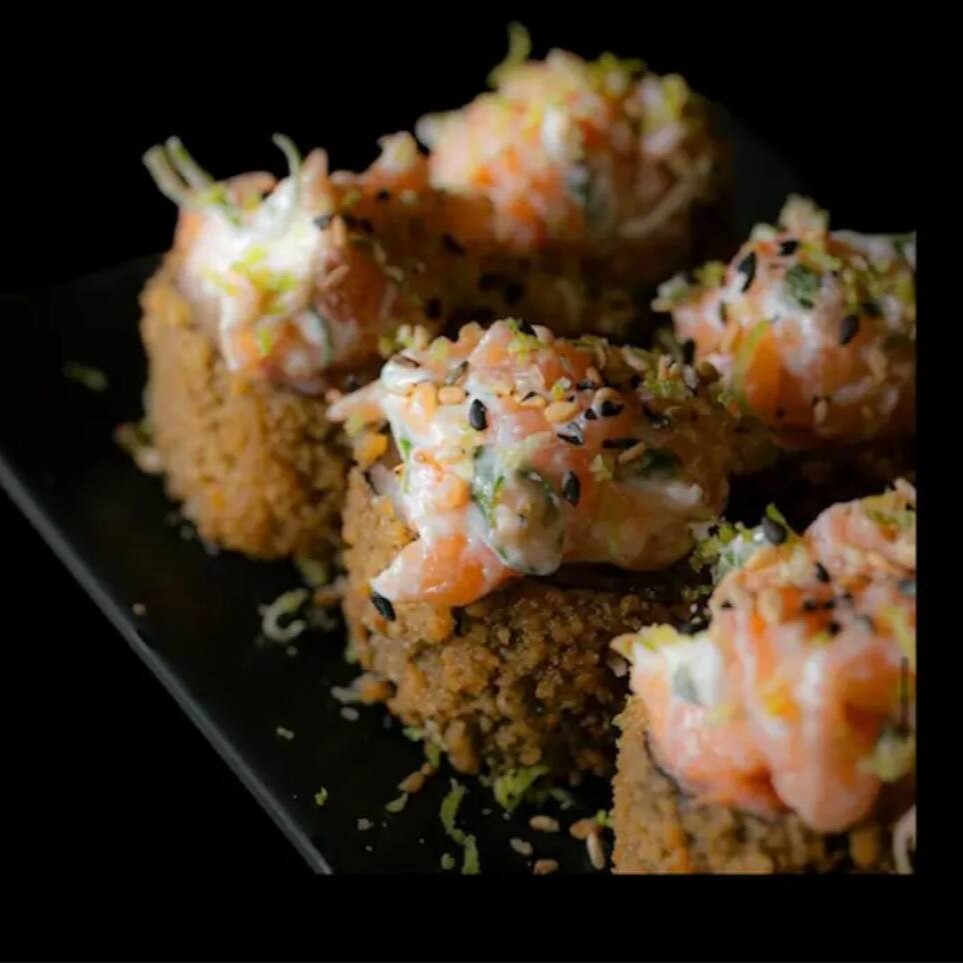 Shimeji, bolinha de salmão à milanesa e cream cheese