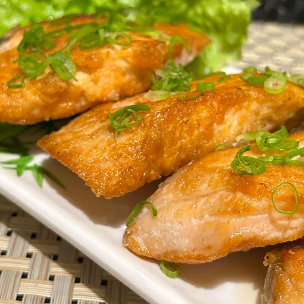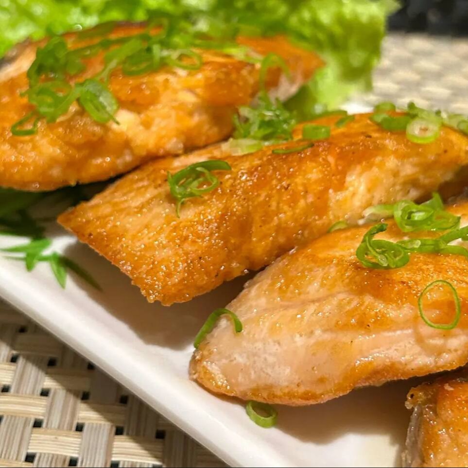 Pele De Salmão Grelhada, Com Cream Chesse E Cebolinha.