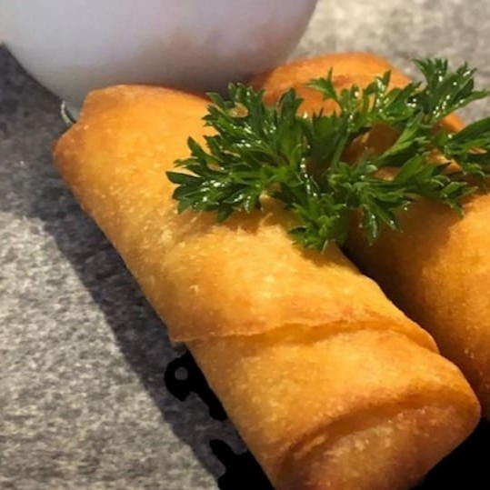 Salmão, cream cheese e cebolinha enrolado na massa do rolinho