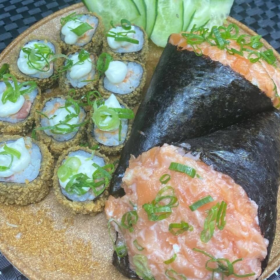 1 Temaki Philadelphia ,1 Porção De Hot Holl Com 10 Unidades