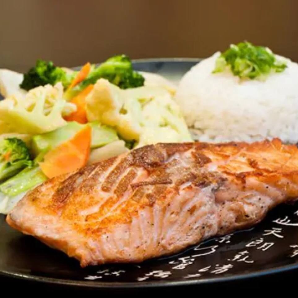 Legumes Na Manteiga,Salmão Grelhado E Yakimeji