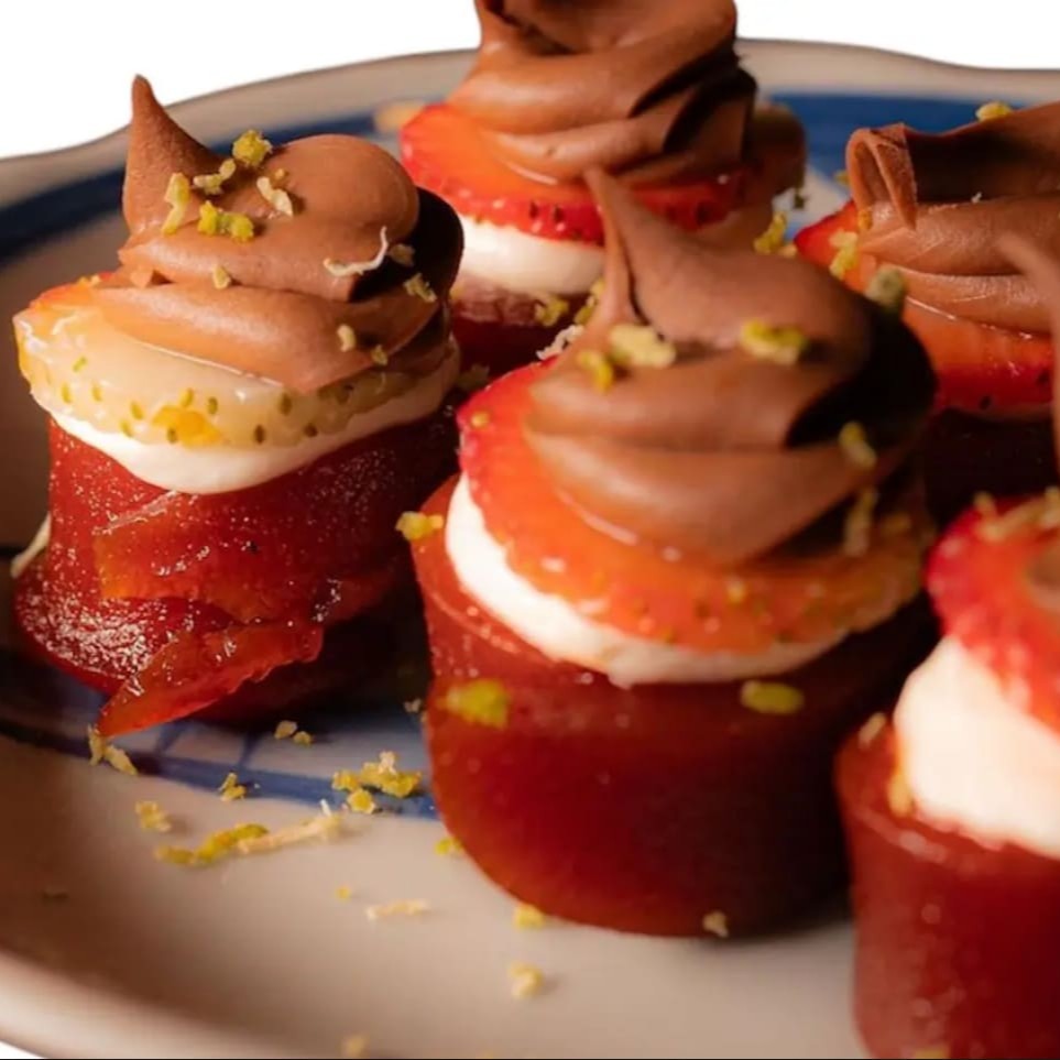 Joe de goiabada com cream cheese, morango, chocolate e raspa de limao